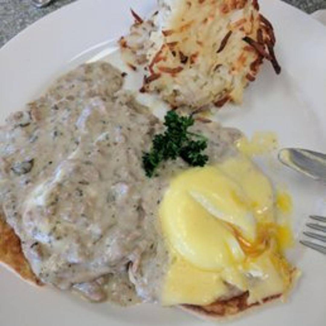 Two perfectly poached eggs, served atop your choice of toast with a side of fresh fruit or breakfast potatoes.