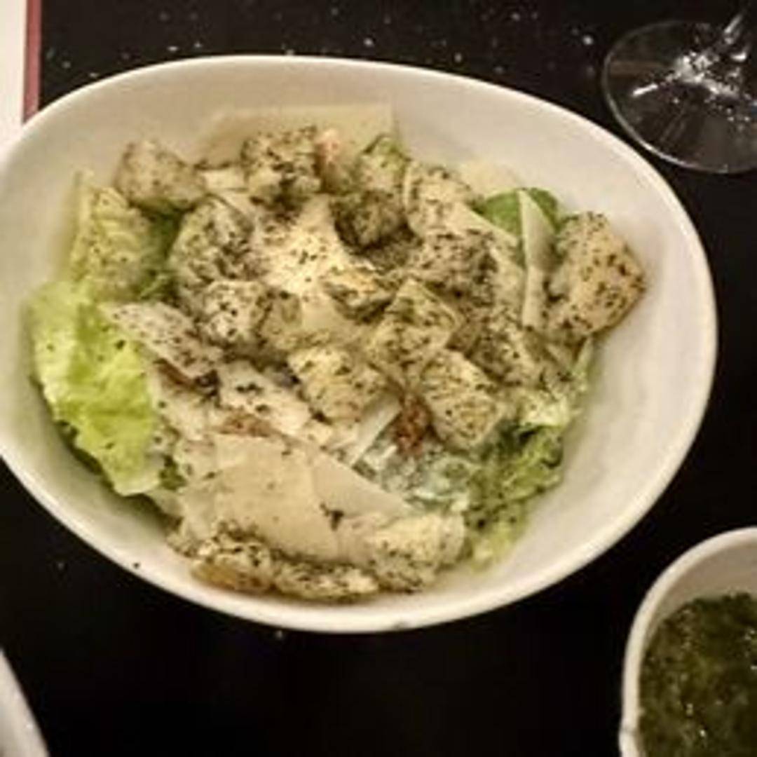 Crisp romaine lettuce tossed in a creamy Caesar dressing, with croutons, Parmesan cheese, and often anchovies. A classic salad with a tangy and savory profile.