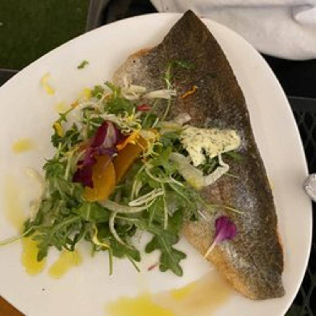 Pan-seared Rocky Mountain trout, served with seasonal vegetables and a lemon butter sauce.