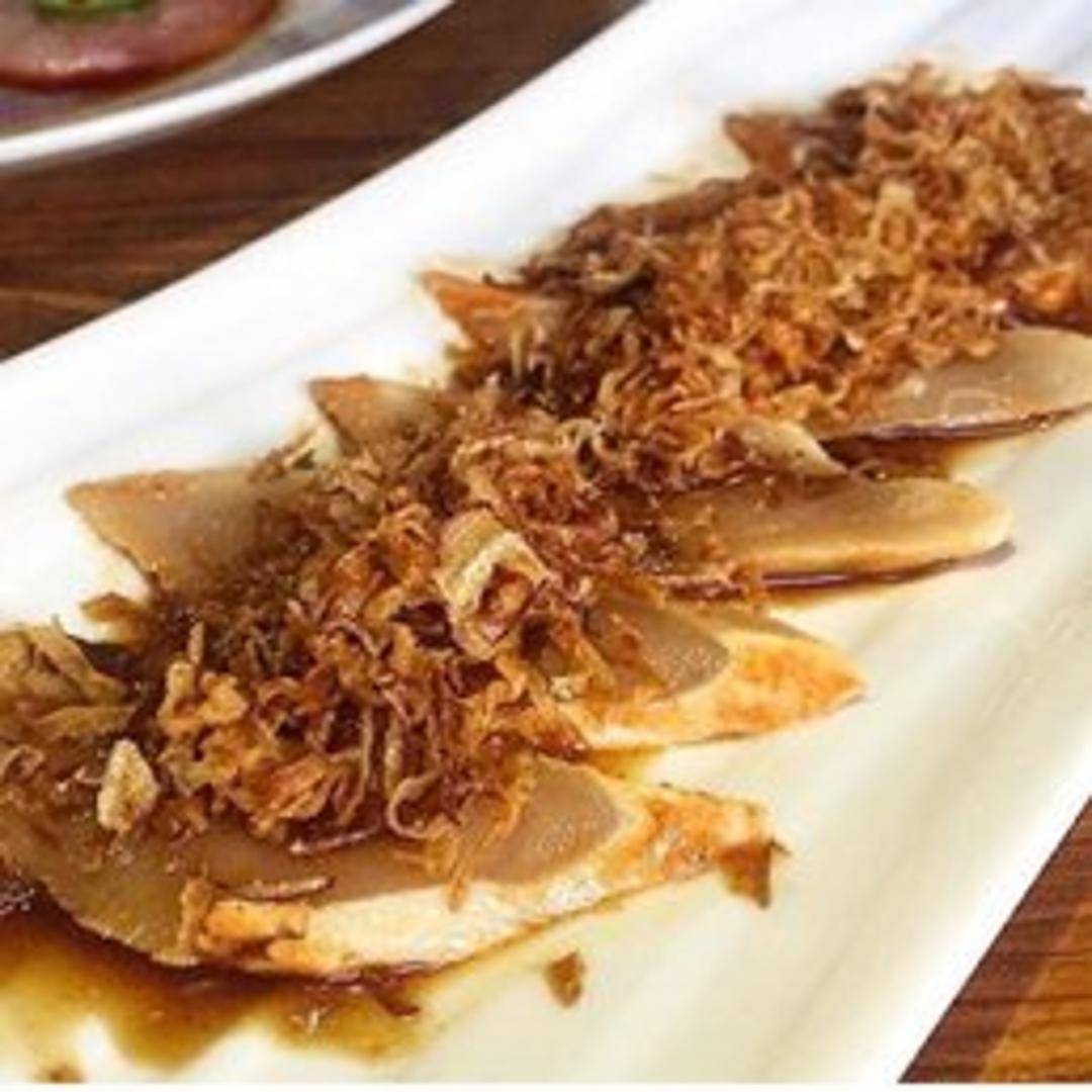 Thinly sliced, fresh albacore tuna that has been lightly seared on the outside, leaving the inside raw and tender. Often served with ponzu sauce, ginger, and wasabi for dipping.
