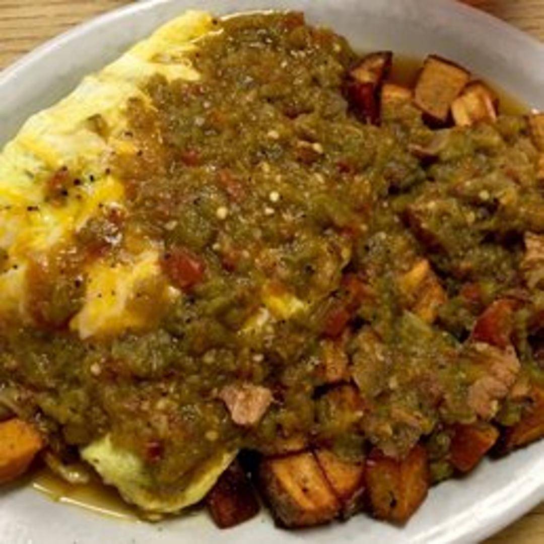 A fluffy three-egg omelette filled with your choice of fillings, including cheese, vegetables, and meats. Served with your choice of toast and a side of potatoes.