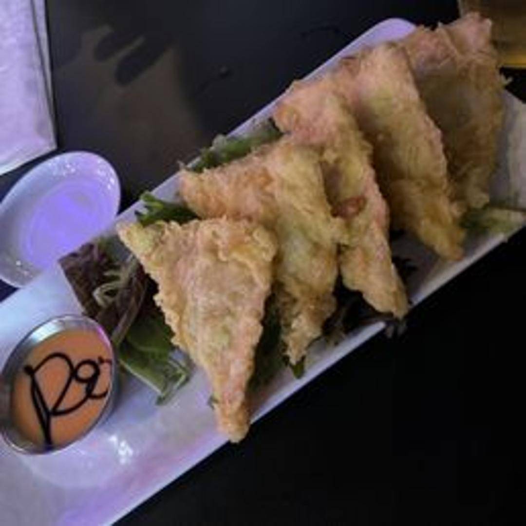 Crispy wontons filled with crab and cream cheese. Served with sweet chili sauce.