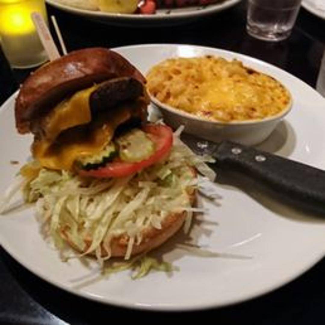 Indulge in the Ultimate Burger, a masterpiece crafted for the true burger aficionado. This hearty creation features a juicy, premium beef patty, grilled to your specification and stacked high with crisp lettuce, ripe tomatoes, red onion, and pickles. Crowned with melted aged cheddar cheese and our special house sauce, all nestled within a toasted brioche bun, delivering an explosion of classic flavors and textures.