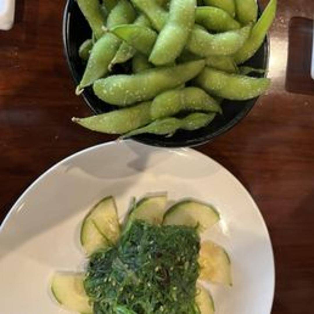 A refreshing salad made with marinated seaweed, often featuring a sesame oil and vinegar dressing.