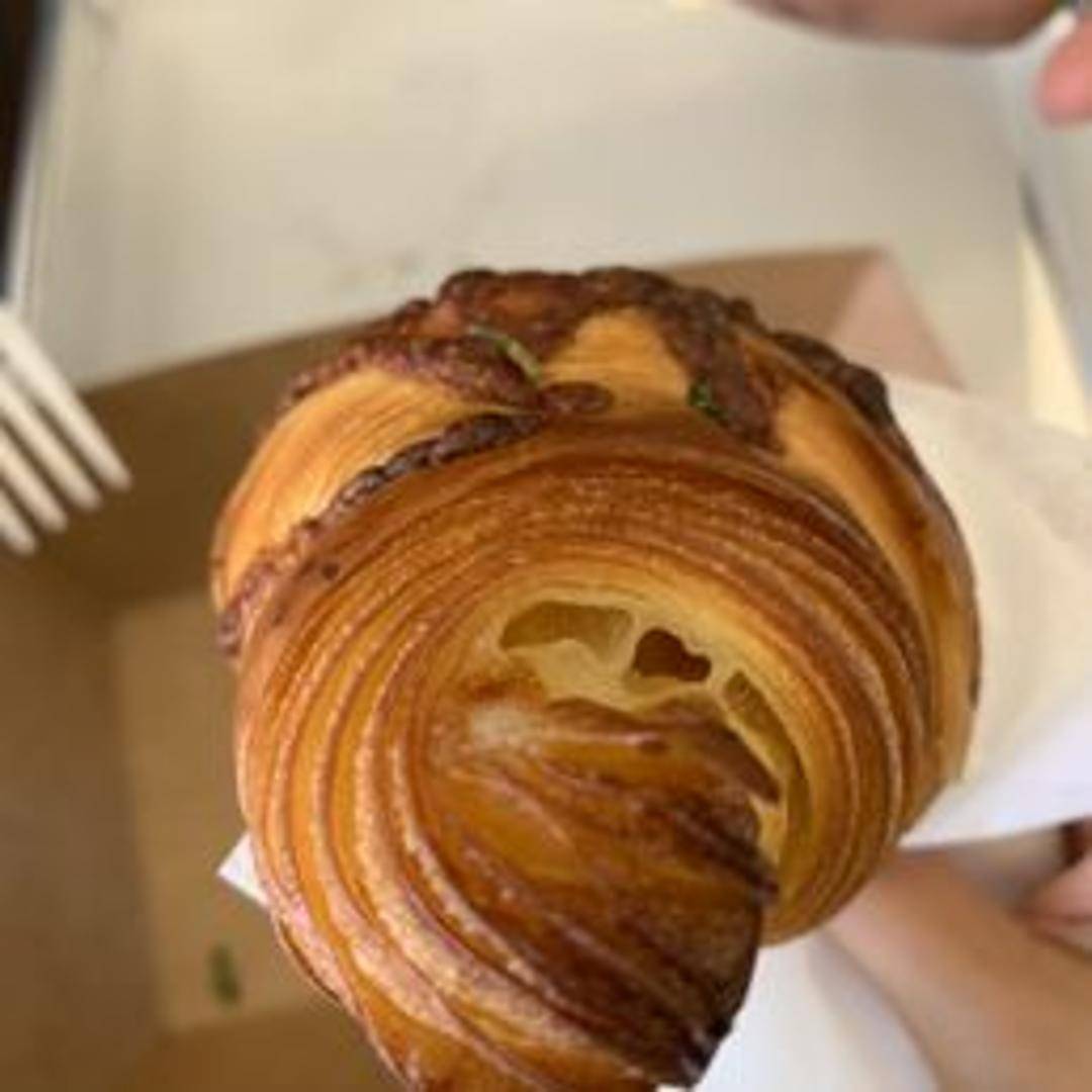 Flaky, buttery croissant filled with sliced turkey, ham, and cheese. Often toasted or warmed to melt the cheese.