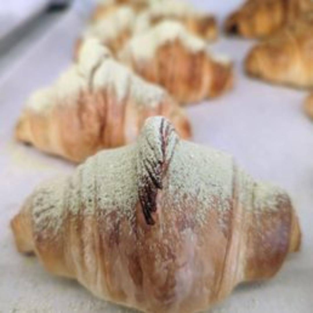 A vibrant green croissant infused with the earthy and slightly sweet flavor of matcha. Features a flaky exterior and a soft, layered interior with a subtle green tea aroma. May have a matcha glaze or filling for an extra boost of flavor.