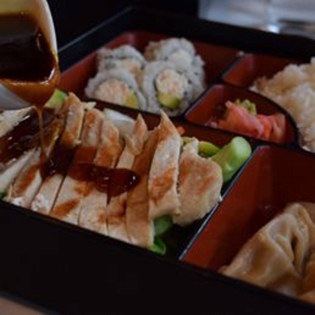 Enjoy a complete and flavorful meal with our Chicken Teriyaki Bento Box. This classic offering showcases perfectly grilled chicken breast, generously coated in our signature sweet and savory teriyaki glaze. Each box is thoughtfully assembled with fluffy steamed rice, a vibrant garden salad with our house ginger dressing, and typically includes additional delights such as gyoza, spring rolls, or California roll pieces for a well-rounded and delightful experience.