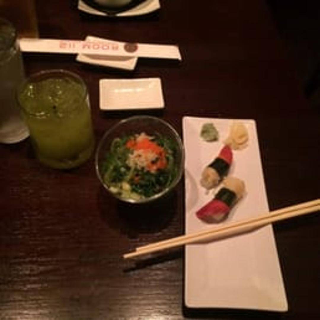 A refreshing and vibrant Japanese appetizer consisting of various types of crisp, marinated seaweed, tossed with a light dressing of sesame oil, rice vinegar, and a hint of soy, often garnished with toasted sesame seeds for an added layer of flavor and texture.