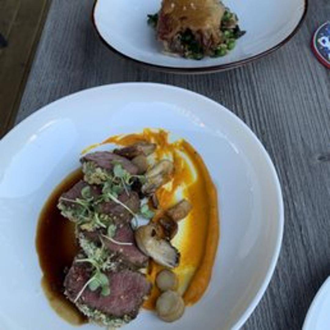 Tender and succulent young lamb, expertly prepared to highlight its delicate flavor, often accompanied by fresh seasonal spring vegetables and a complementary, savory sauce, offering a rich yet refined main course that celebrates the freshness of the season.