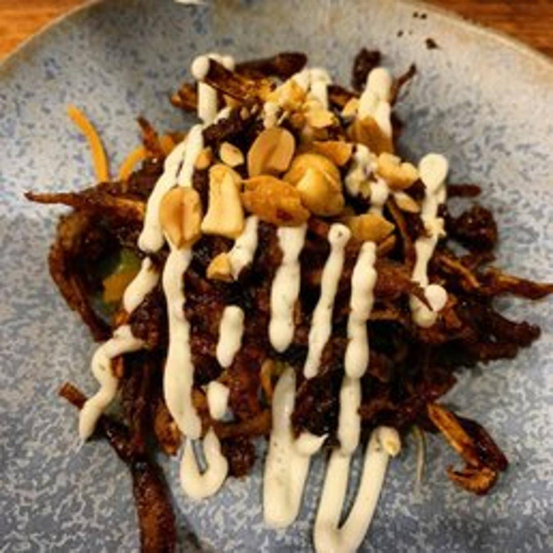 Indulge in our crispy and savory Pig Ears, meticulously prepared to achieve a delightful texture. A unique and flavorful appetizer, often enhanced with a delicate seasoning or glaze, offering a sophisticated start to your meal.