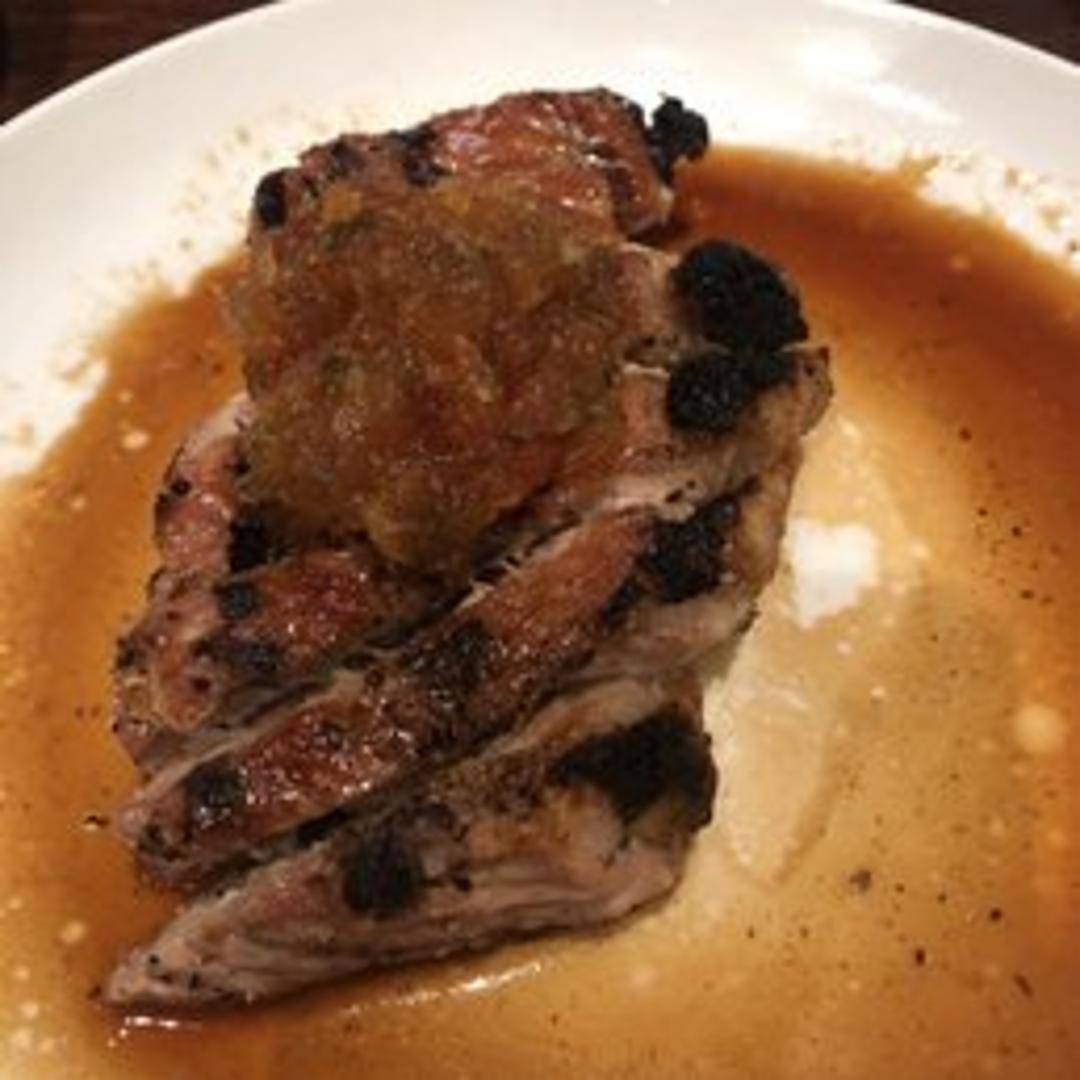 Elegantly prepared duck breast, pan-seared to perfection for a crispy, golden skin and tender, rosy interior. This rich and distinctively flavored dish is typically accompanied by a complementary reduction or fruit-based sauce and seasonal vegetables.