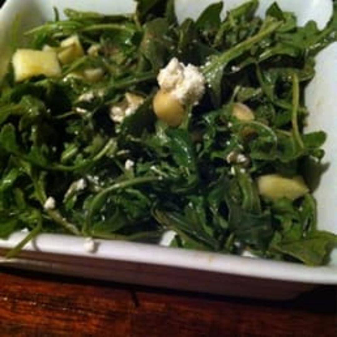 A vibrant and refreshing salad featuring crisp, peppery arugula leaves lightly tossed in a zesty lemon vinaigrette. Often complemented with delicate shavings of Parmesan cheese, toasted nuts, or seasonal berries for a delightful balance of fresh flavors and textures.