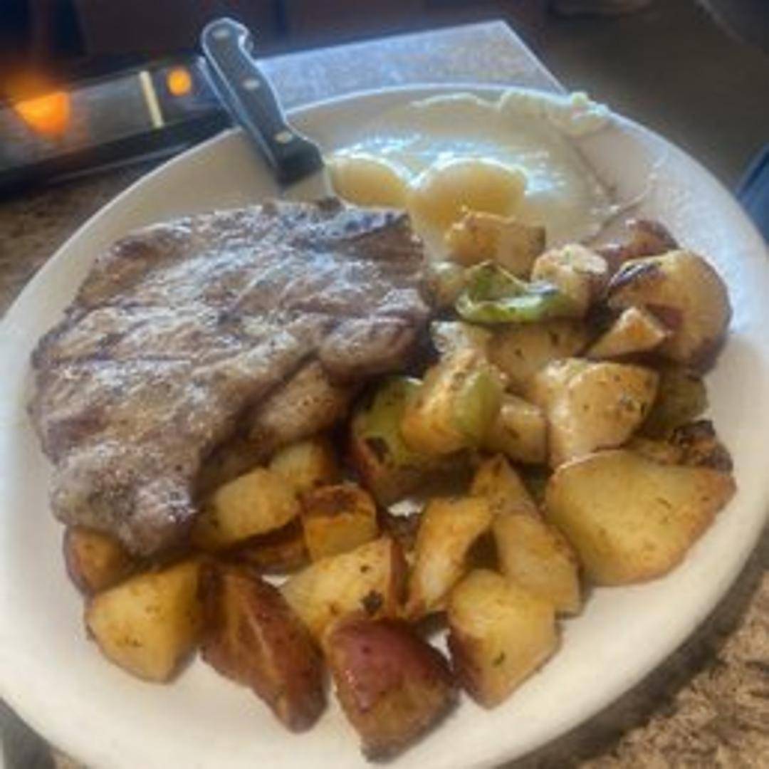 Two juicy grilled pork chops, seasoned and cooked to perfection. Served with your choice of two sides.