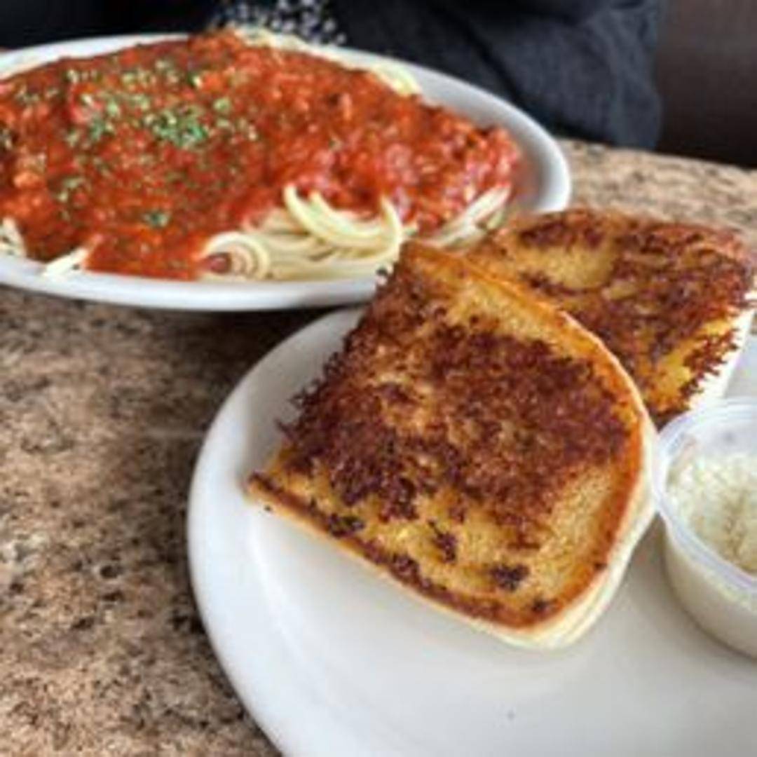 Classic spaghetti topped with our homemade marinara sauce and your choice of meatballs or Italian sausage. Served with garlic bread.