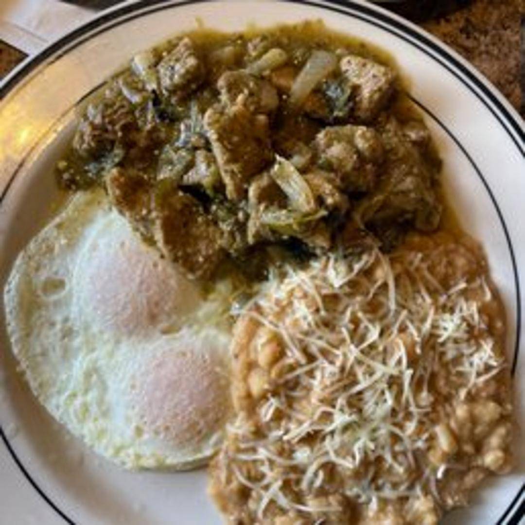 Tender chunks of pork simmered in a flavorful green chile sauce. Served with tortillas, rice, and beans.