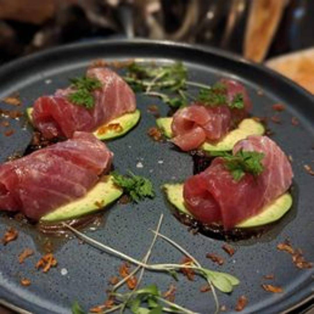 Thinly sliced raw tuna, drizzled with olive oil, lemon juice and seasoned with sea salt. Often garnished with herbs, chili flakes, or citrus zest.