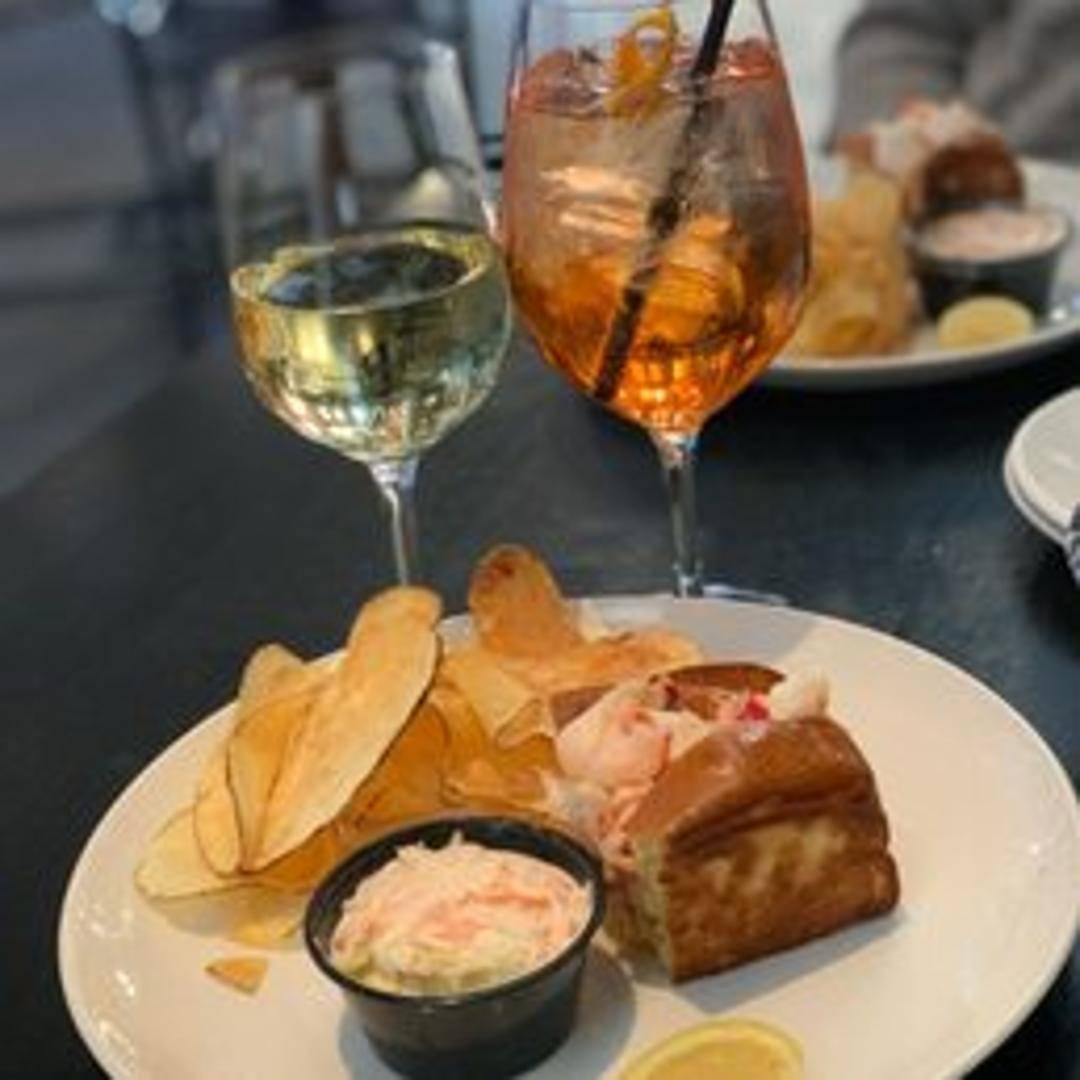 Fresh, chilled lobster meat lightly dressed with mayonnaise and celery, served on a toasted and buttered New England-style split-top roll.