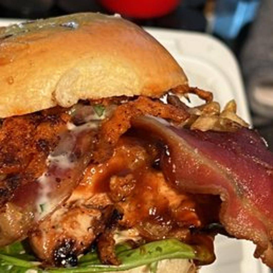 Our classic Chicken Sandwich features a tender and crispy fried chicken fillet, nestled in a soft brioche bun. Completed with crisp lettuce, fresh tomato, and a slather of our signature house sauce, it’s a perfectly balanced and utterly delicious sandwich.