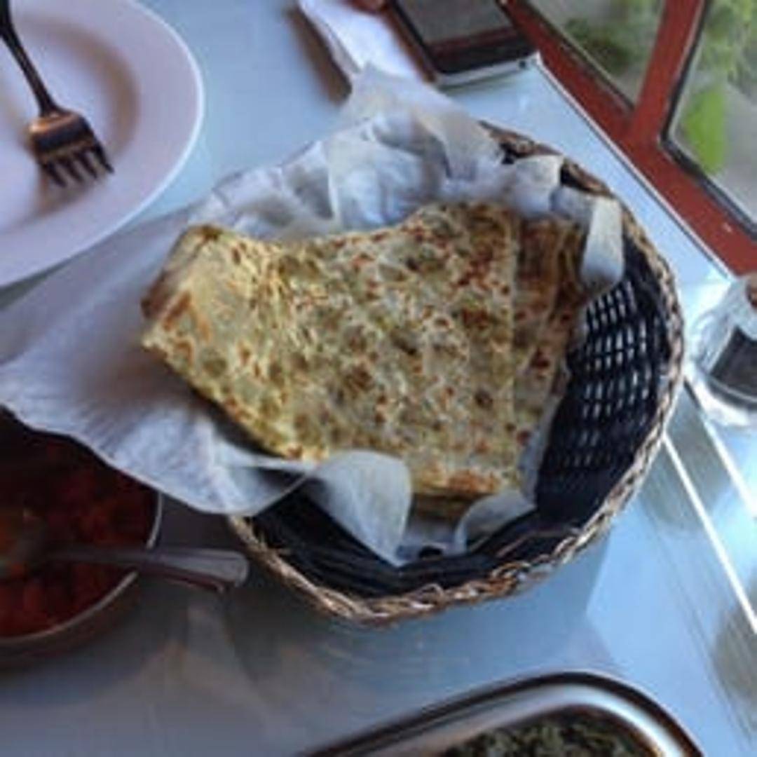A flaky and layered flatbread made with whole wheat flour and ghee, cooked on a griddle until golden brown and slightly crispy. Perfect for dipping in curries or enjoying on its own.