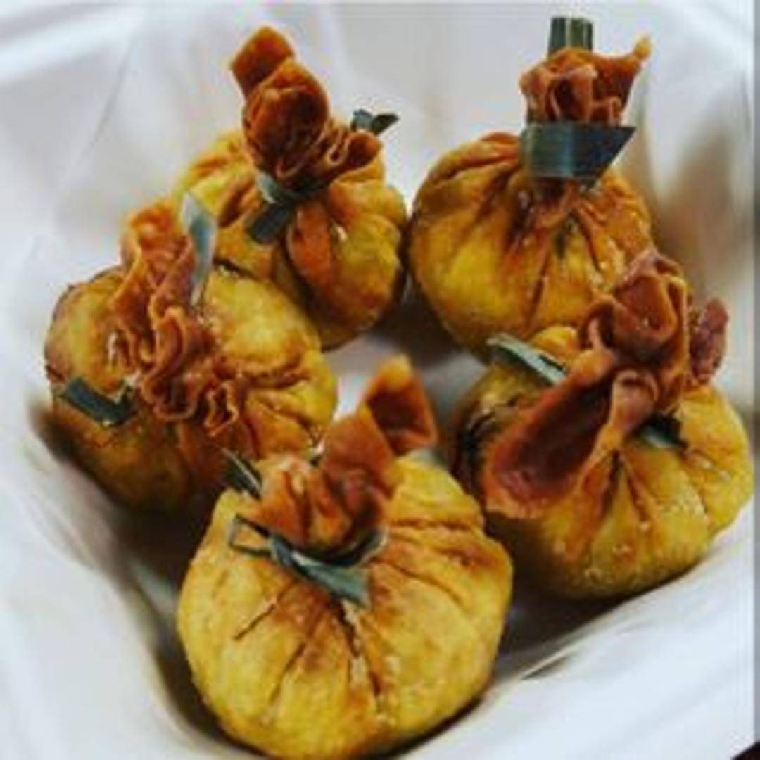 Delight in our crispy Golden Bags, a popular appetizer featuring delicately wrapped parcels fried to a beautiful golden crisp. Each bag is generously filled with a savory blend of seasoned minced ingredients, offering a delightful crunch and flavorful surprise with every bite, perfectly complemented by our sweet chili dipping sauce.