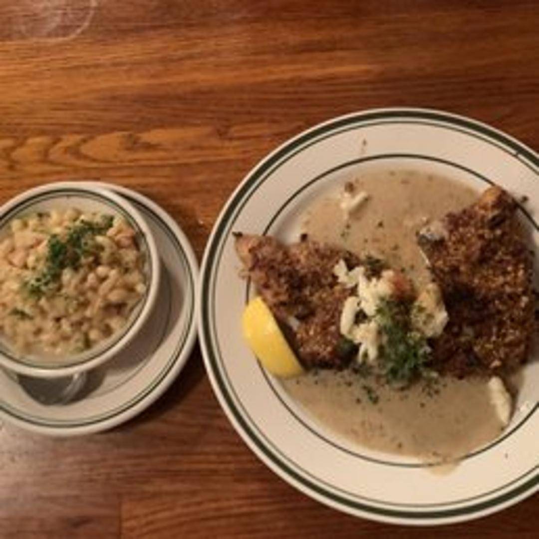 A delightful fillet of flaky haddock, coated in a savory and crunchy pecan crust with a hint of spice, then perfectly cooked to achieve a golden exterior and tender, moist interior. This dish offers a harmonious blend of nutty texture, delicate fish, and a subtle warmth.