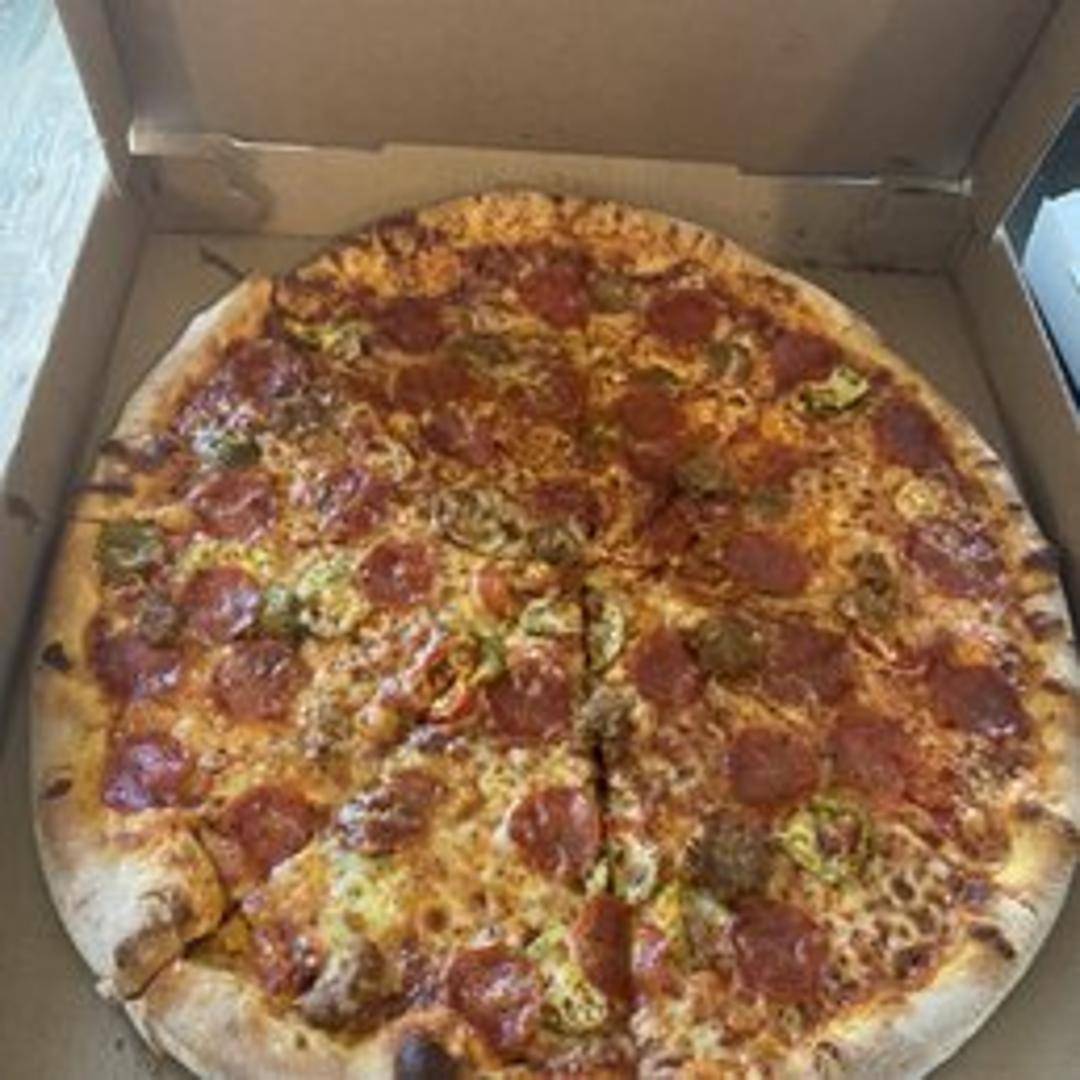 Our spiciest pizza! Featuring a fiery blend of ghost peppers, jalapenos, habaneros, and a special spicy tomato sauce. Topped with mozzarella cheese and your choice of protein (optional). Not for the faint of heart!