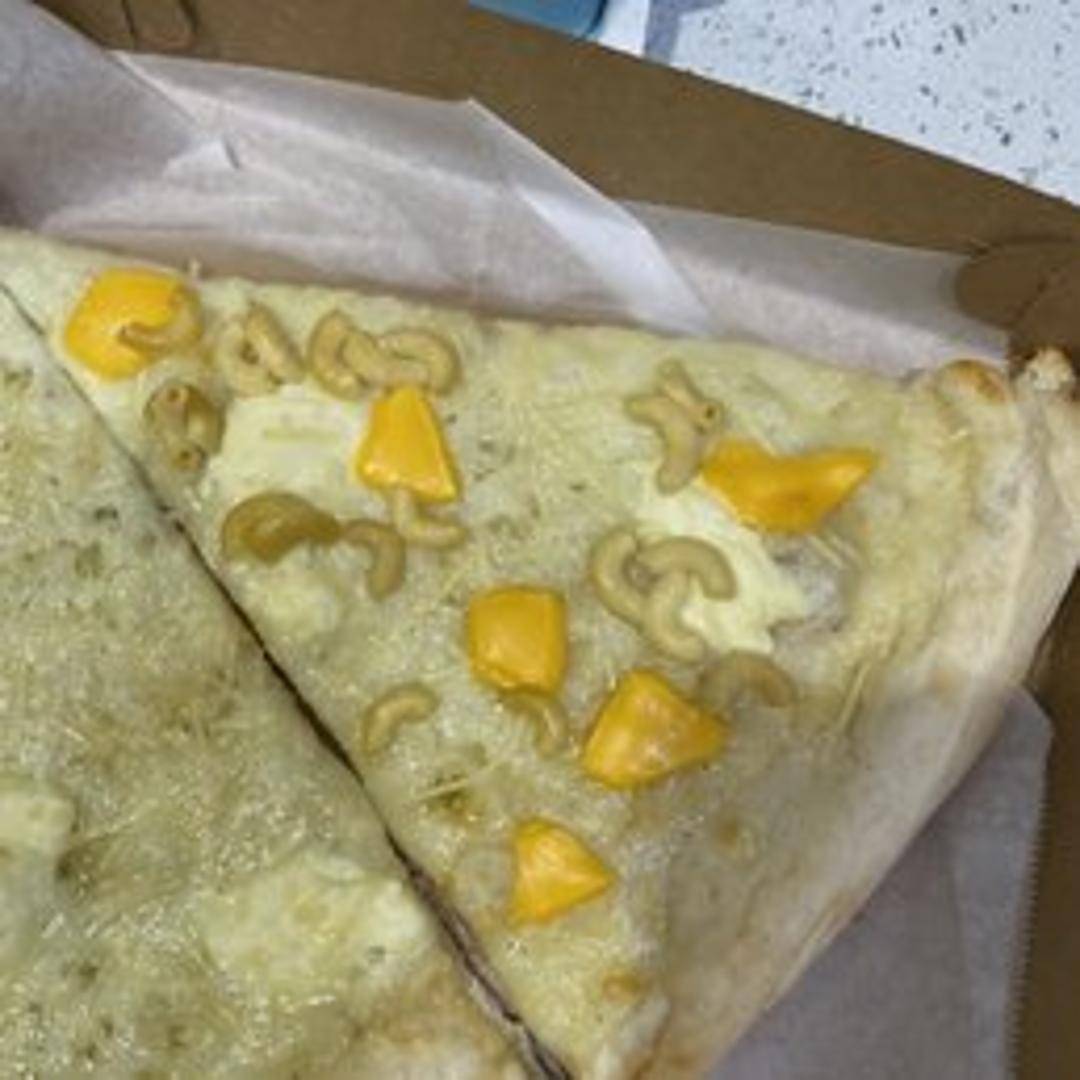 Our signature pizza crust topped with a creamy, homemade mac & cheese sauce, elbow macaroni, and a blend of melted cheeses. A comforting and cheesy delight.