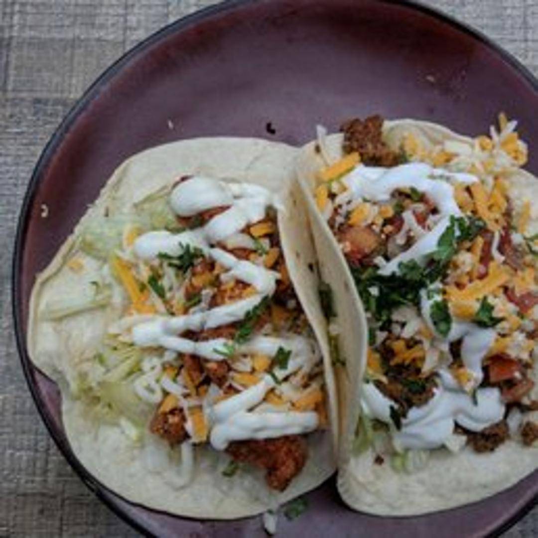 Savor the timeless comfort of our Ground Beef Tacos. We take perfectly seasoned lean ground beef, cooked until tender and bursting with classic flavor, and serve it in your choice of a warm flour tortilla or a crisp corn shell. Each taco is generously topped with shredded cheddar cheese, fresh crisp lettuce, diced ripe tomatoes, and a dollop of cool sour cream, delivering a satisfying and familiar favorite.