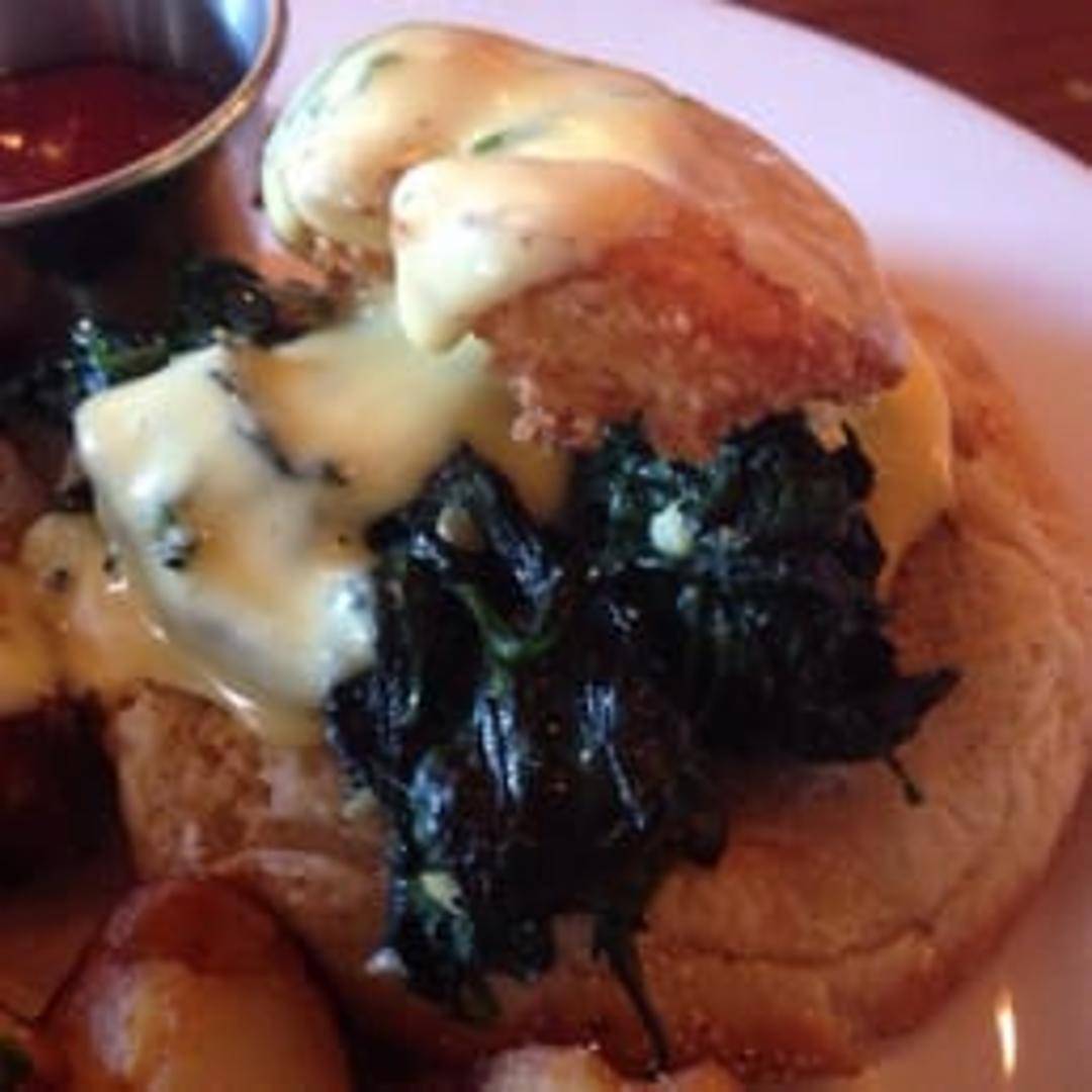 A poached egg that is then lightly fried for a crispy exterior and a runny yolk. Served as a standalone item or an add-on to another dish. Often accompanied by a hollandaise or aioli sauce and potentially served on a bed of greens or a toast.