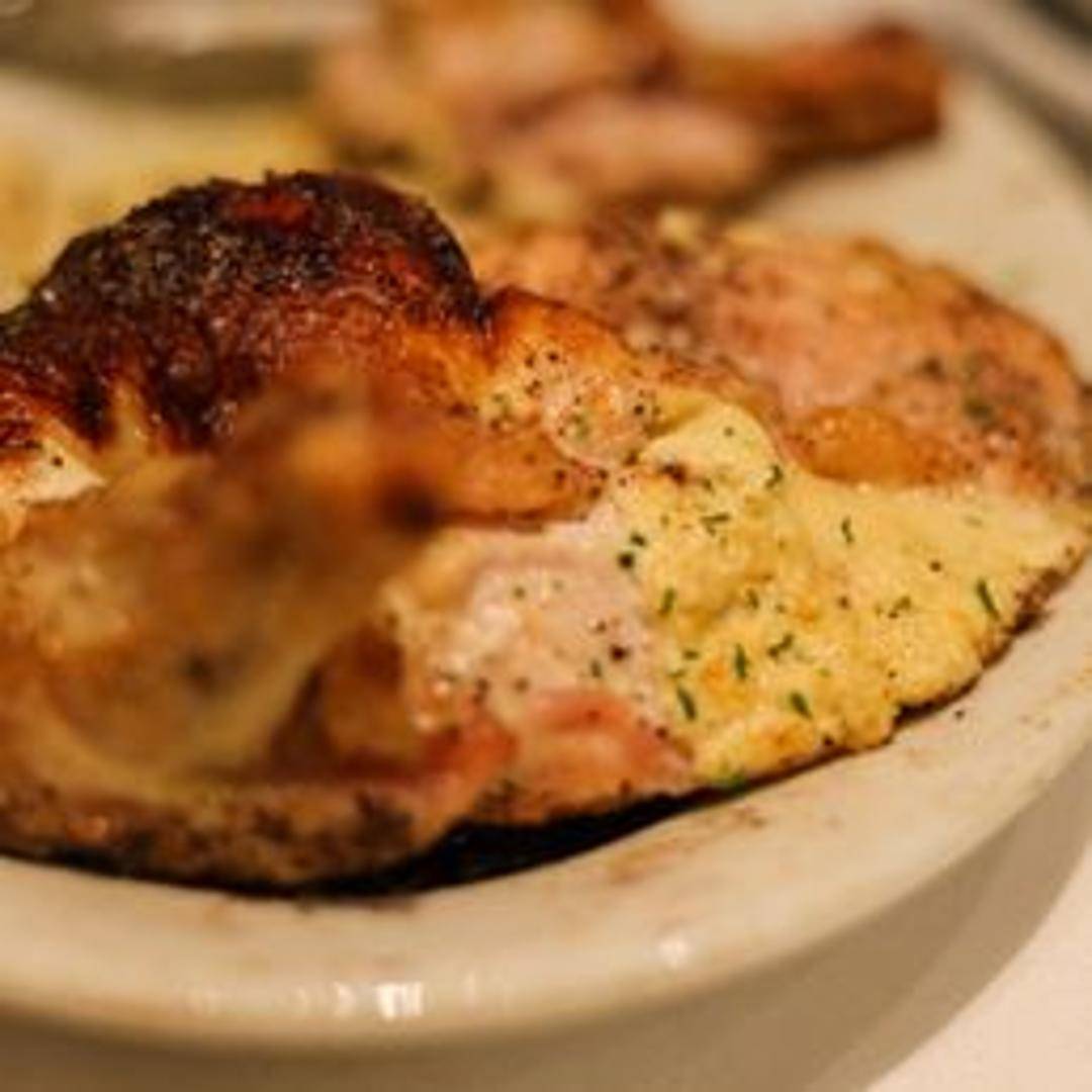 A tender chicken breast stuffed with a creamy herb cheese. Served golden brown and juicy.