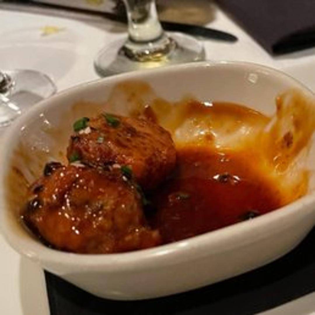 Savory meatballs prepared with Asian-inspired seasonings and spices. Served with a flavorful dipping sauce and garnish. Preparation and accompaniments may vary based on availability and chef's selection.