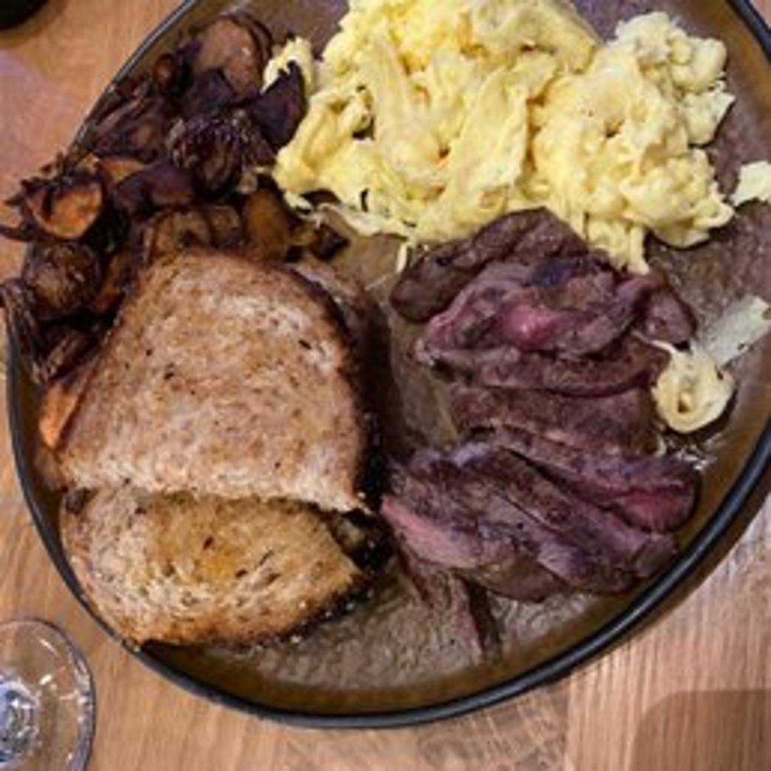 Fuel your day with the timeless classic, Steak and Eggs. Enjoy a tender, perfectly cooked cut of steak paired with two farm-fresh eggs prepared just the way you like them. A robust and satisfying breakfast or brunch option that truly hits the spot.