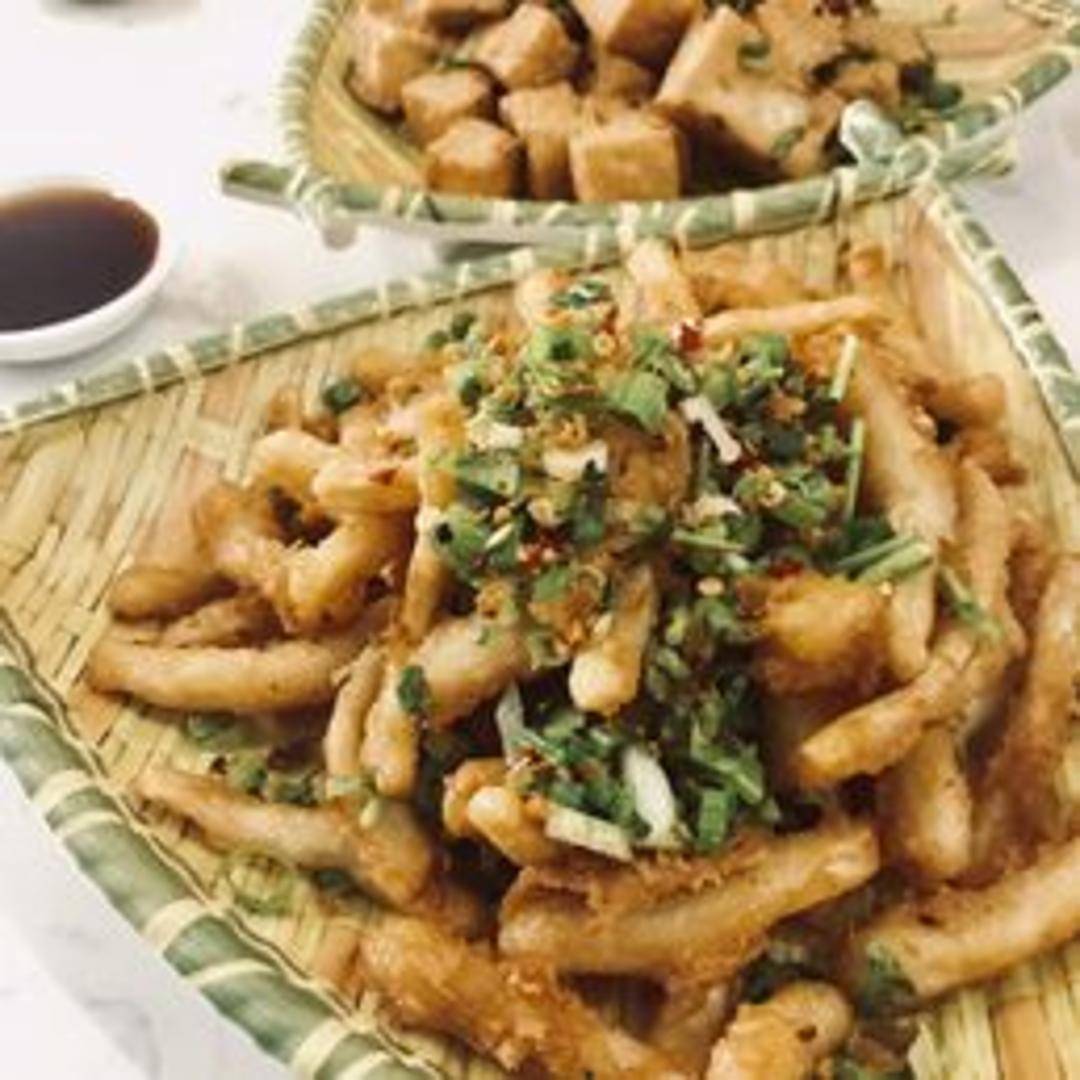 Crispy, golden-brown squid seasoned with a generous blend of salt and pepper. Often includes other aromatics like garlic, chili flakes, and chopped scallions. The squid is tender on the inside and crunchy on the outside, delivering a burst of savory and slightly spicy flavor. Served hot.