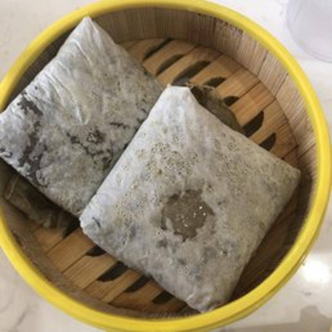 Savory sticky rice steamed with tender pieces of pork and possibly other fillings, all wrapped in a fragrant lotus leaf. The lotus leaf imparts a subtle, earthy aroma and flavor to the rice, creating a unique and delicious dim sum experience. May contain ingredients like mushrooms, Chinese sausage, or dried shrimp.