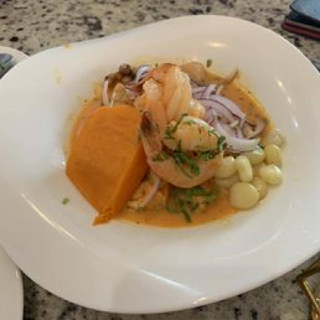 A signature ceviche featuring a mix of fresh seafood such as fish, shrimp, octopus, and calamari marinated in lime juice with red onions, cilantro, and aji limo peppers. Often served with sweet potato, Peruvian corn (choclo), and cancha (toasted corn).