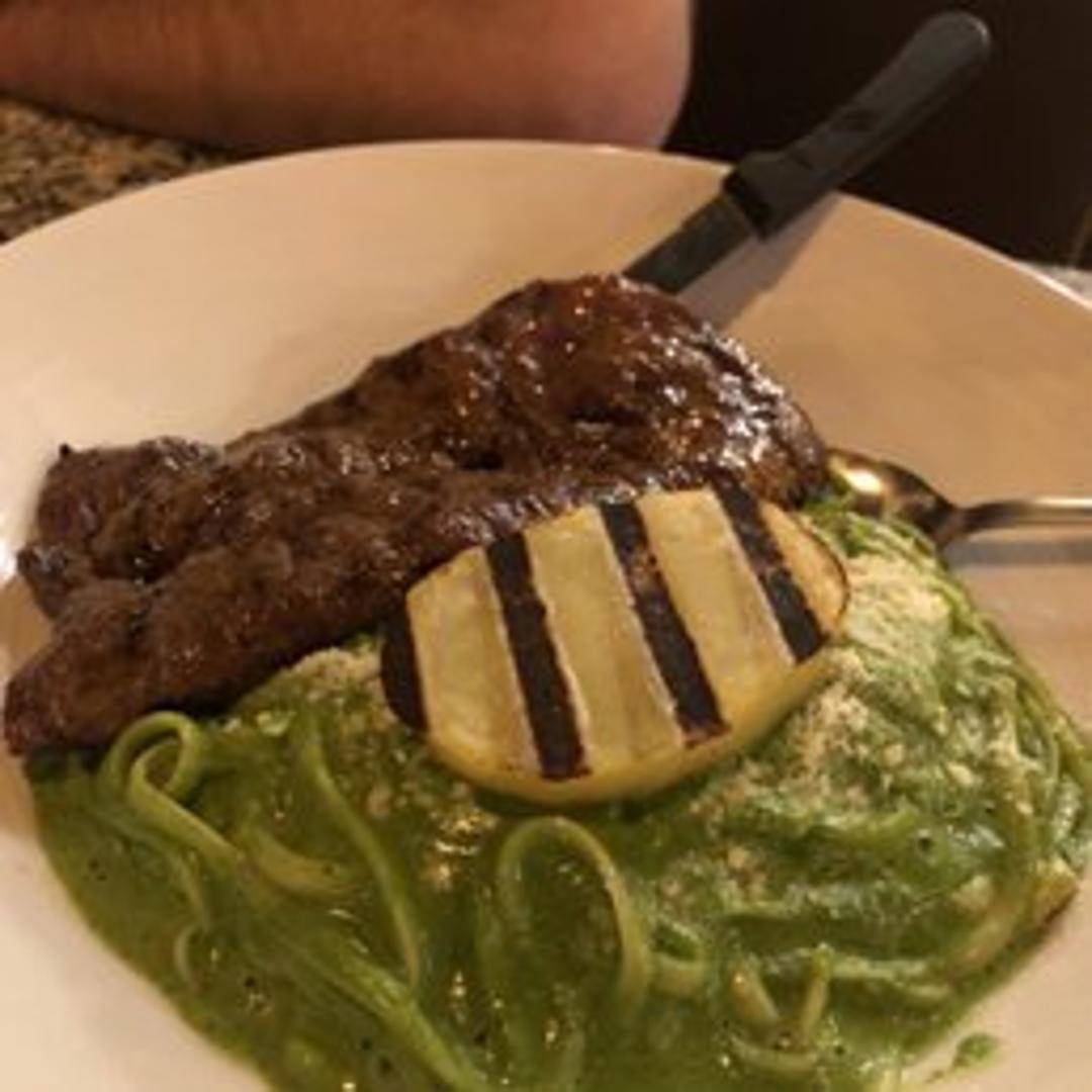Grilled skirt steak marinated in a blend of herbs and spices, offering a robust and smoky flavor. Served with chimichurri sauce and your choice of two sides.