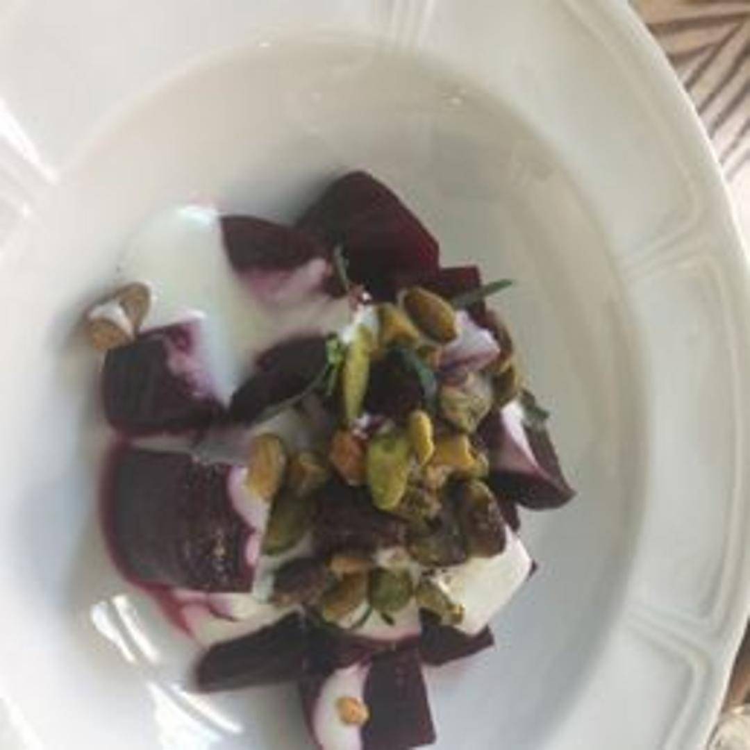 A vibrant and refreshing salad featuring tender, earthy beets, often roasted or boiled, complemented by fresh greens, crumbled cheese (like goat cheese or feta), and a light vinaigrette dressing, possibly enhanced with nuts or herbs.