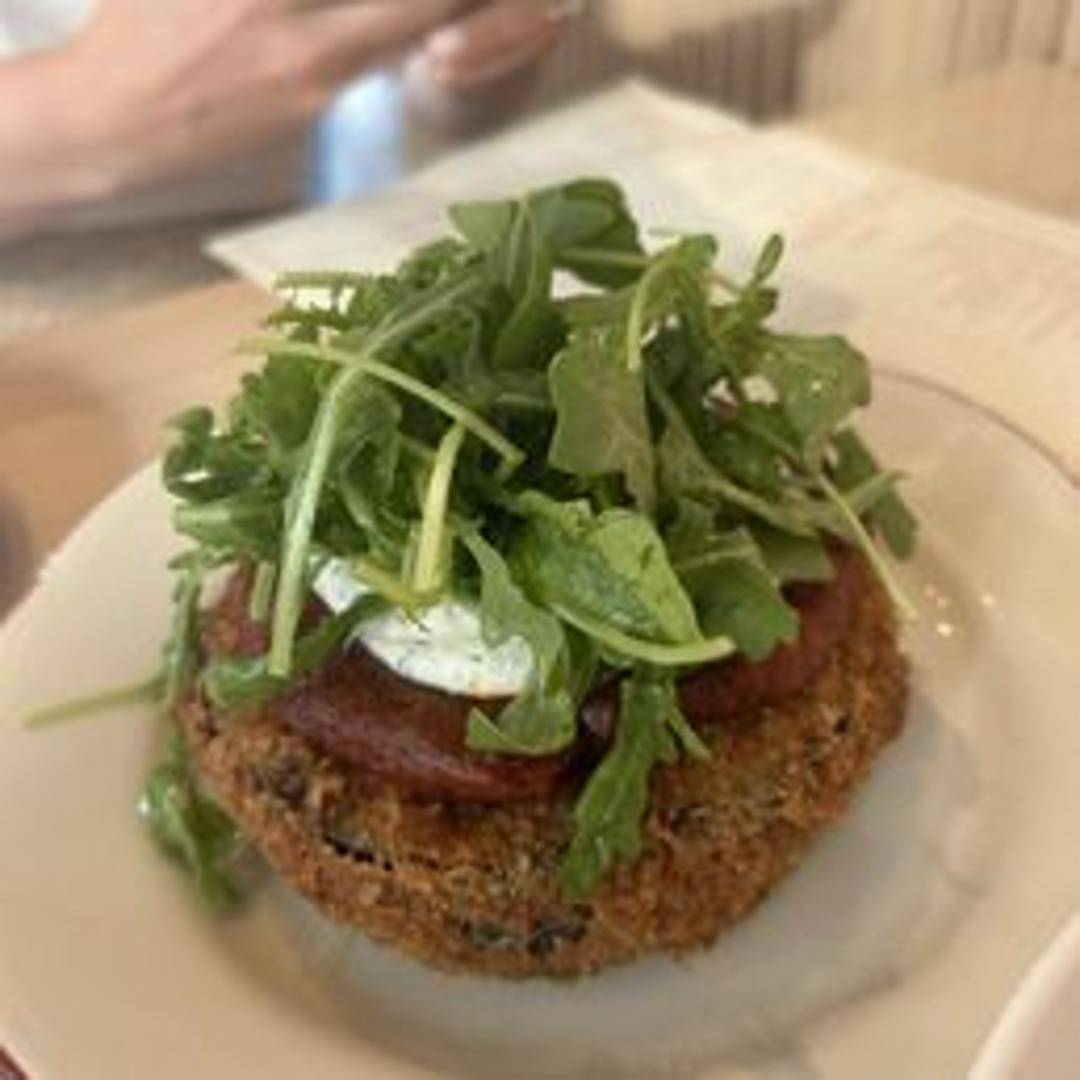 Fried eggplant slices, cooked until perfectly crispy. Served with toppings and dipping sauces.