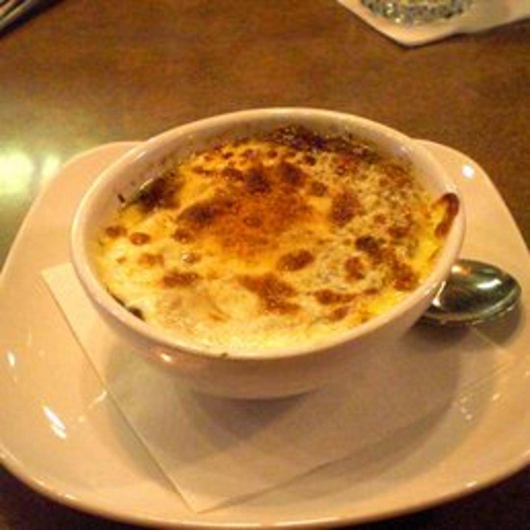 A classic, rich onion soup simmered in a savory broth, topped with a toasted crouton and melted Gruyere cheese.