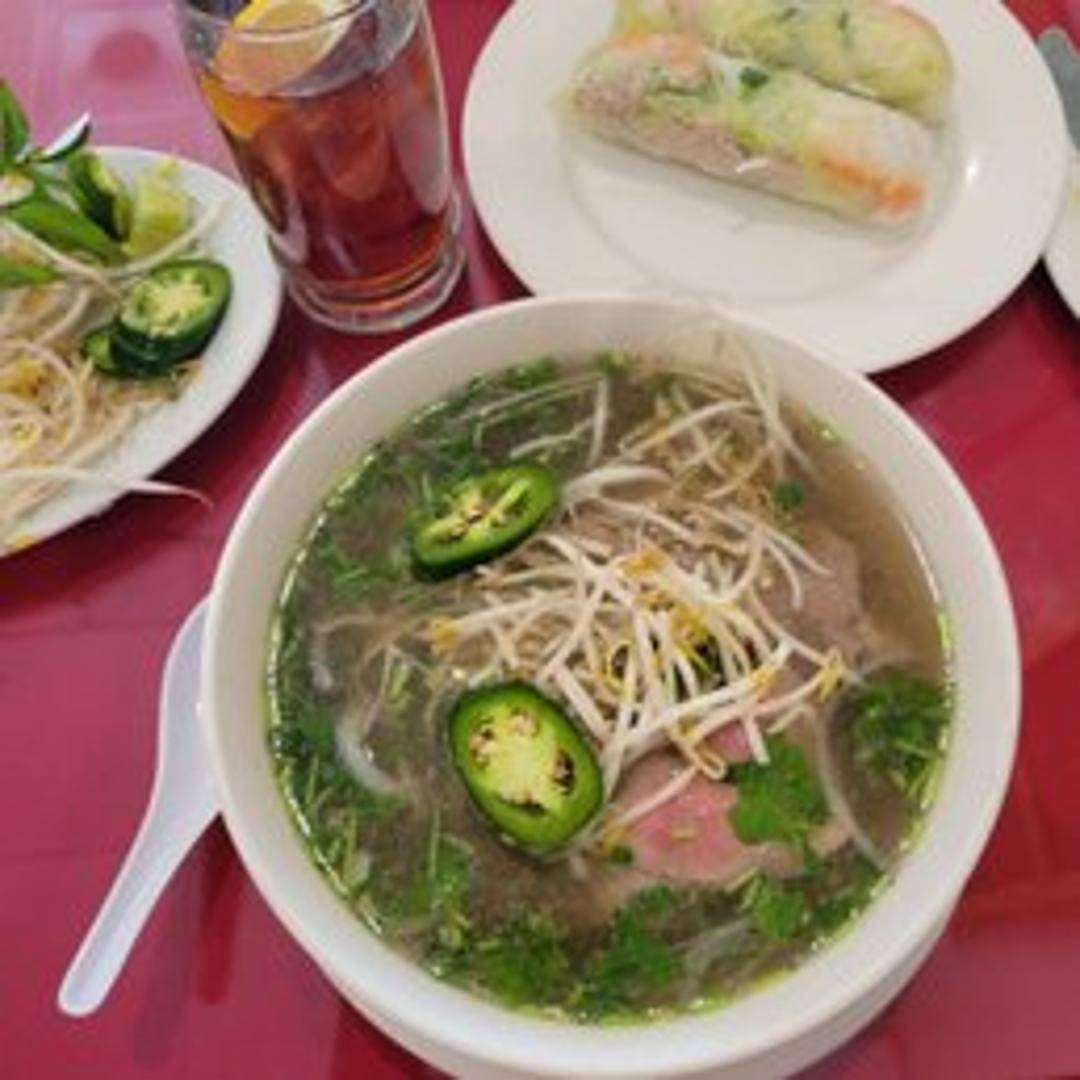 The quintessential Vietnamese beef noodle soup, our Beef Pho boasts a deeply fragrant and clear broth, meticulously simmered for hours with beef bones and a blend of traditional spices like star anise, cloves, and cinnamon. This comforting bowl is generously filled with tender rice noodles, thinly sliced cuts of beef (such as rare steak, brisket, or meatballs), and garnished with fresh white onions and scallions. Served with a traditional side plate of crisp bean sprouts, aromatic basil, zesty lime, and spicy jalapeño for a personalized culinary experience.