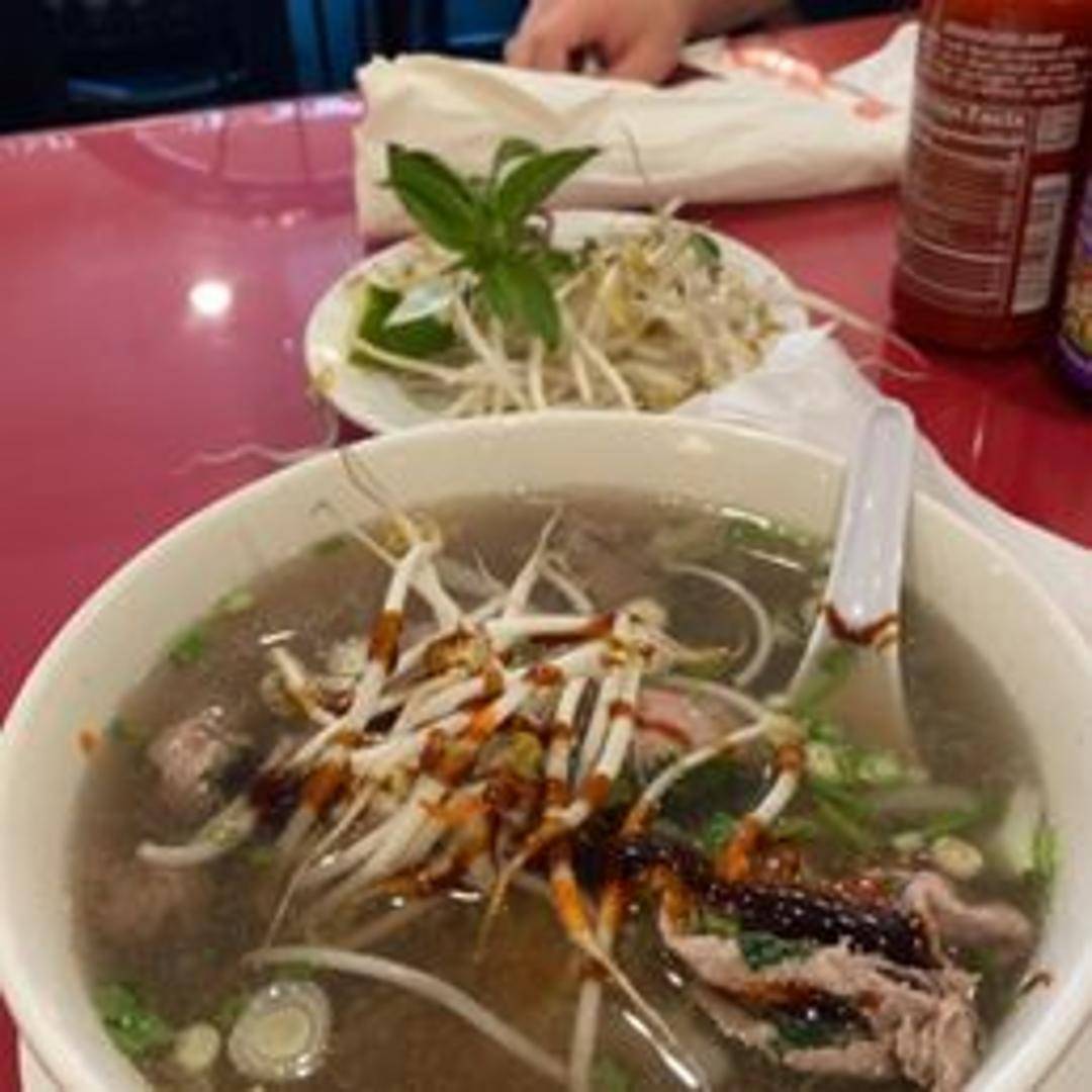 A classic and beloved rendition of traditional Vietnamese beef noodle soup. Our Pho Tai Nam features a deeply aromatic and savory beef broth, slow-simmered for hours with traditional spices. It is served with tender slices of rare round steak (Tai) that cook gently in the hot broth upon serving, and well-done flank steak (Nam). Accompanied by slippery rice noodles and a side plate of fresh herbs, bean sprouts, lime wedges, and jalapeño slices for customizable flavor.