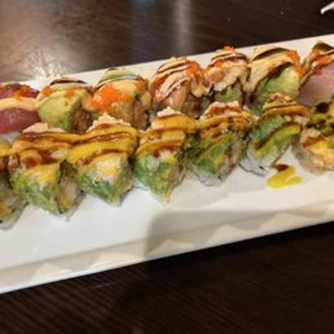 A combination of flavors and textures in a sushi roll; the Double Happiness Roll may contain two key ingredients, such as shrimp tempura and cream cheese, often enhanced with a sweet sauce or spicy mayo, and avocado.