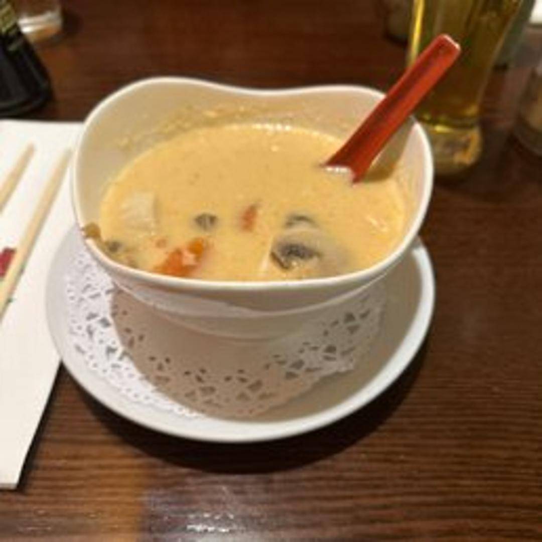 A creamy and aromatic soup infused with coconut milk, lemongrass, galangal, kaffir lime leaves, mushrooms, and your choice of protein (typically chicken, tofu, or shrimp). Offers a balanced flavor profile of sweet, sour, and savory with a hint of spice.
