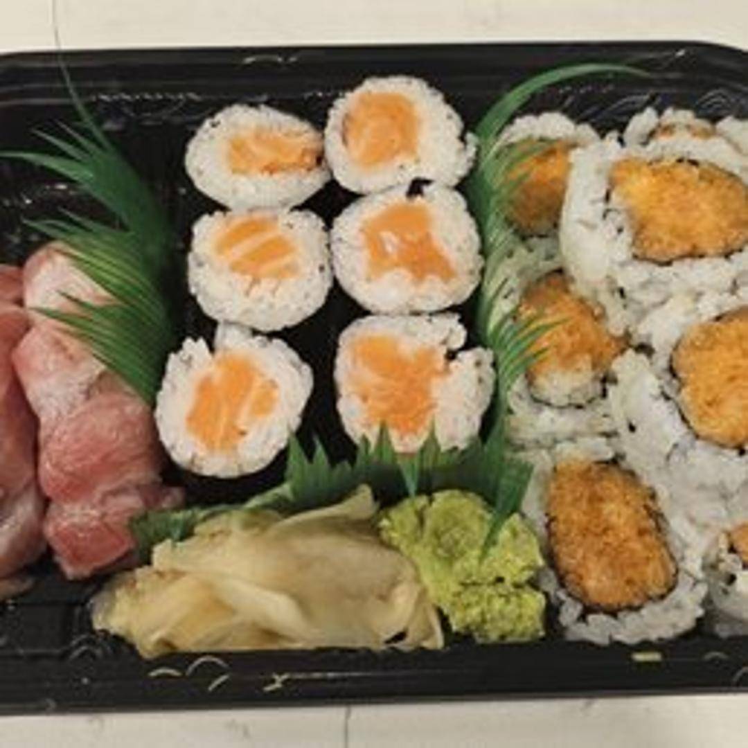Fresh salmon and spicy mayo rolled in sushi rice and seaweed. Contains sesame seeds.