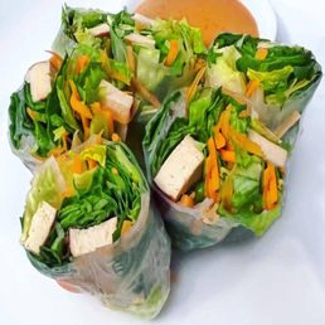 Delicate rice paper rolls filled with vermicelli noodles, fresh herbs, lettuce, carrots, and your choice of protein. Served with peanut sauce.