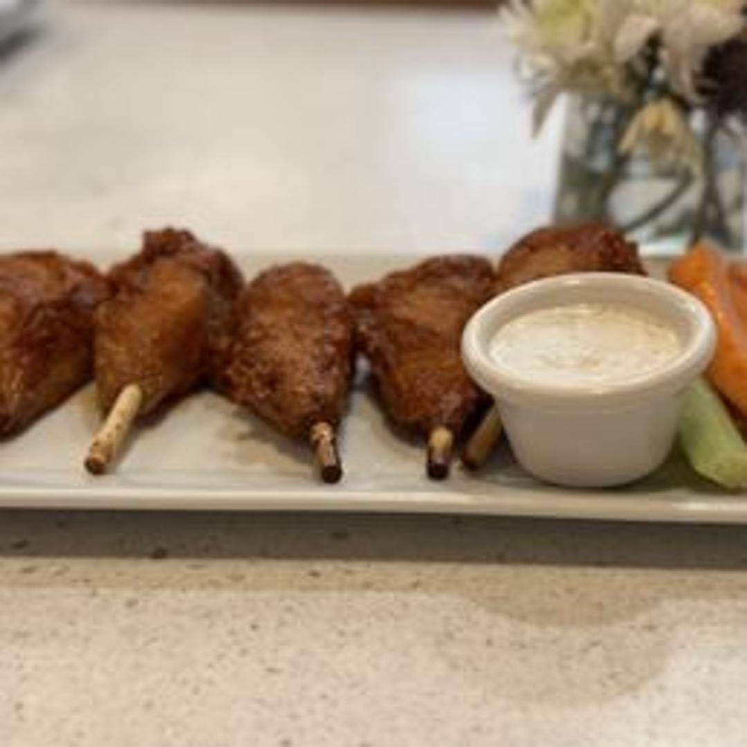 Crispy, plant-based wings coated in a fiery hot sauce. Served with a side of vegan ranch or blue cheese dressing and celery sticks. A classic bar snack, reimagined with plant-based ingredients for a guilt-free indulgence.