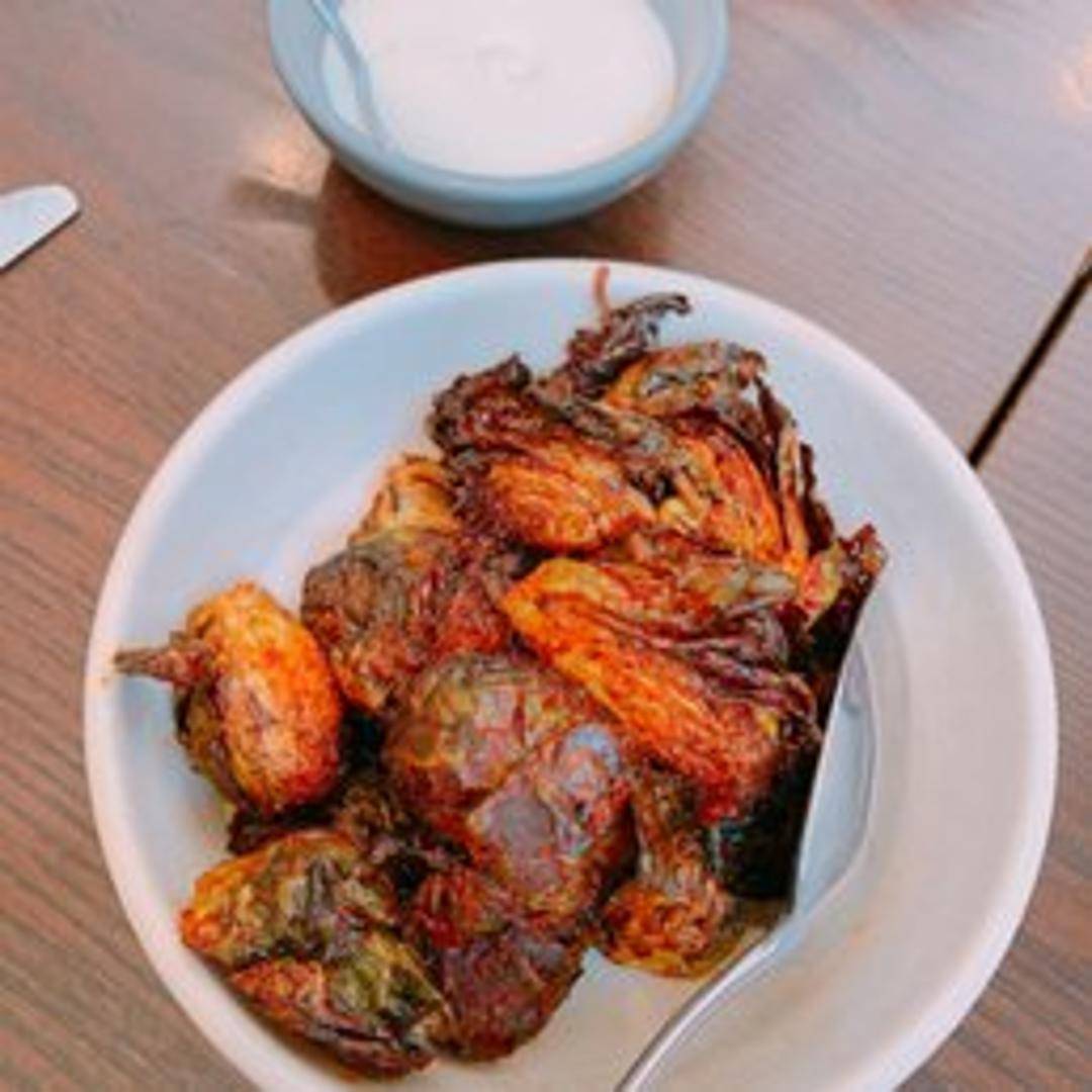 Crispy florets of Brussels sprouts, perfectly fried to achieve a delightful char and tender interior. Seasoned to perfection, these savory bites offer an irresistible combination of texture and depth, making them an unexpectedly delicious side or appetizer.