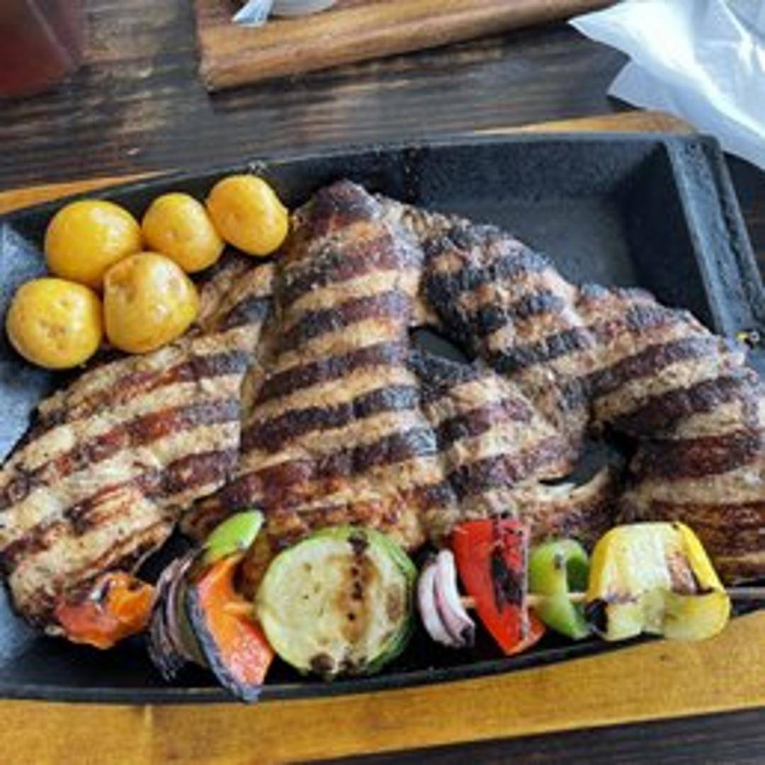 Juicy and tender grilled chicken breast, seasoned with traditional Colombian spices. Served with your choice of two sides.
