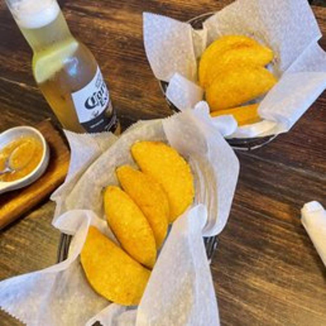 Savory pastry filled with shredded chicken and potatoes, seasoned with Colombian spices. Crispy on the outside and flavorful on the inside, served with a side of ají (Colombian salsa).