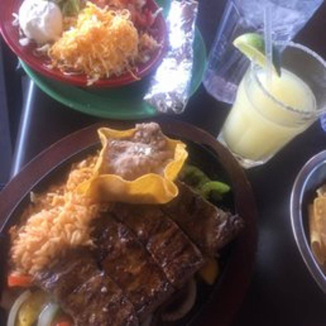 Tender strips of marinated steak grilled with onions, bell peppers, and tomatoes. Served sizzling hot with warm tortillas, guacamole, sour cream, pico de gallo, rice, and beans.